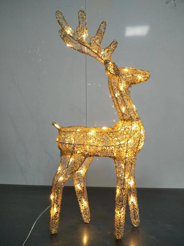 带有40个温暖白色LED灯的金色棉线亮片驯鹿