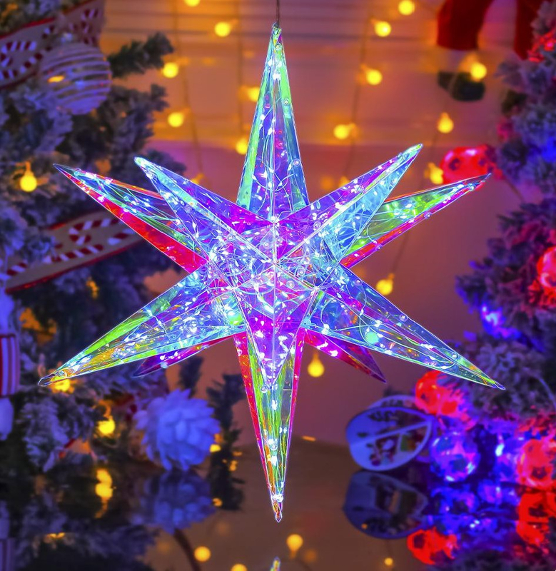 60厘米的铁框5点星管灯带580个温暖的白色LED和闪烁的灯泡 - 室内/室外节日装饰的动态星爆光