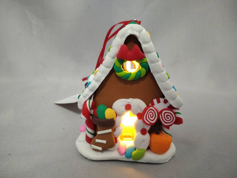 手工制作的糖果甘蔗和Lollipop小屋装饰品,带有温暖的白色LED灯| 7×6.5×9cm迷你照明甜蜜的节日装饰