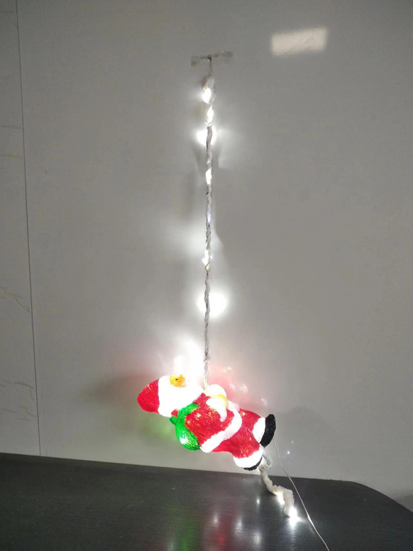 48灯的白色绳索带有照明的攀岩绳设计,具有115厘米高的圣诞老人身材,并装饰有闪烁的灯泡