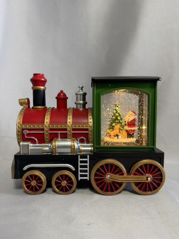 新的迷你火车形装饰灯 - 塑料和树脂结构,带有1个温暖的白色LED灯泡,可爱的怀旧设计