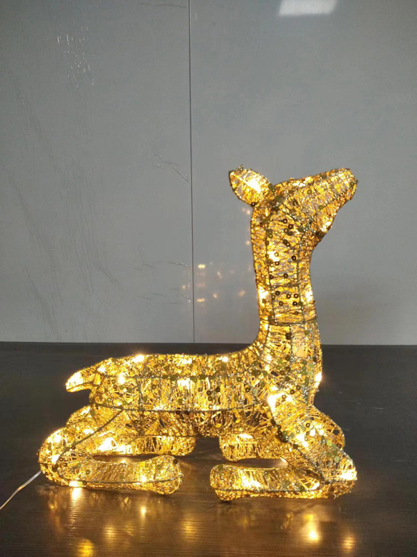 带有40个温暖白色LED灯的金色棉线亮片驯鹿