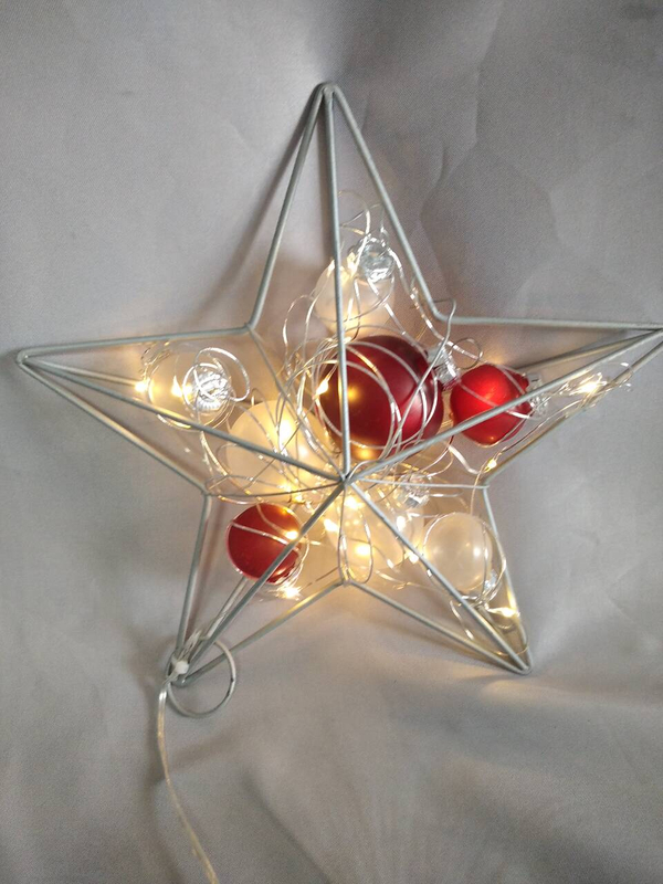 直径25厘米的五点恒星灯雕塑,带4:1闪烁的灯泡铜线 +红色/白色宠物地球装饰,节日装饰灯,用于节日/活动造型
