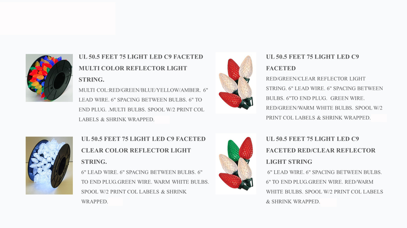 50.5 英尺 75 灯 LED c9 多面不同颜色反射灯串