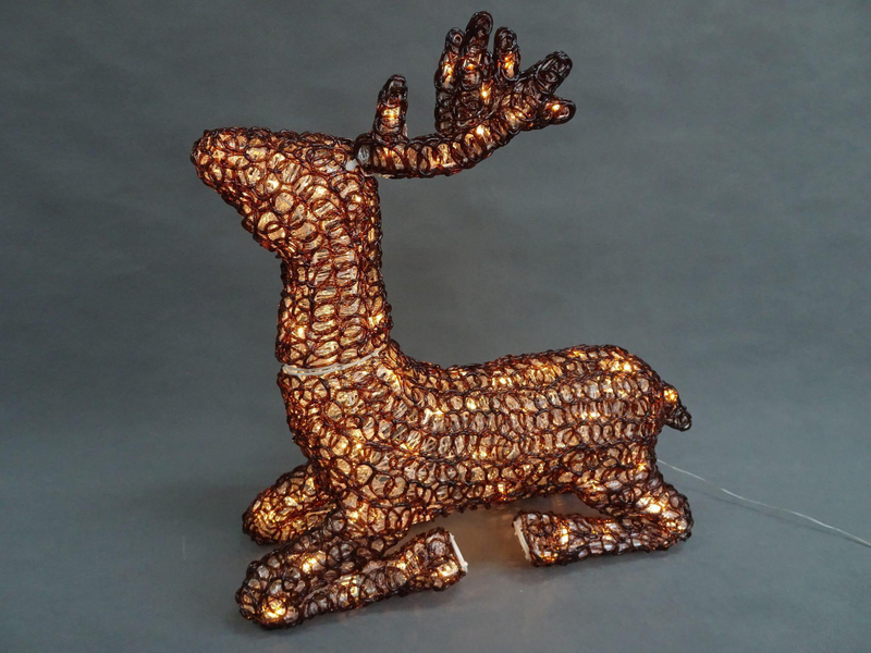 带有40个温暖白色LED灯的金色棉线亮片驯鹿