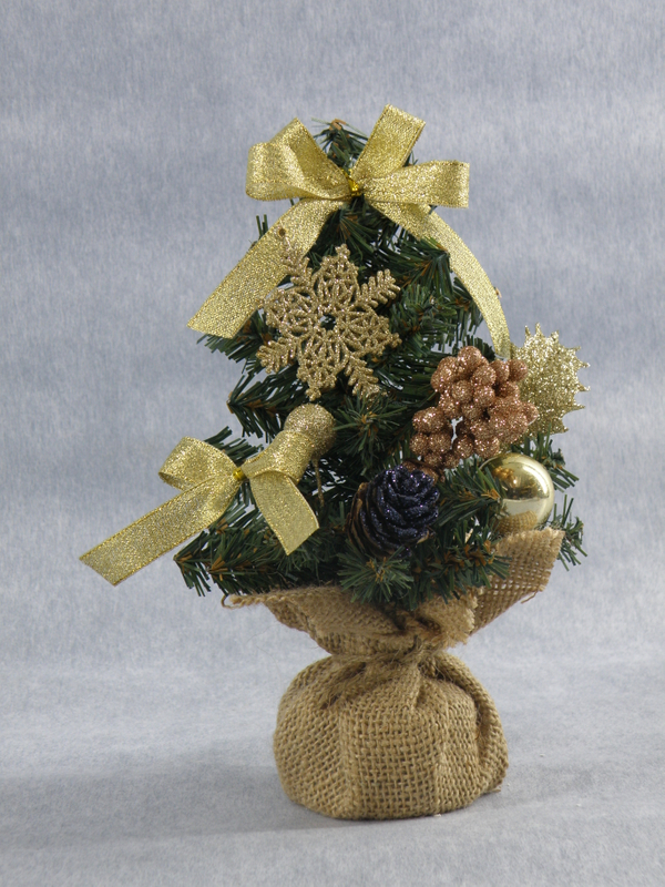 圣诞绿色迷你树+金球/闪光松果/金花/金带