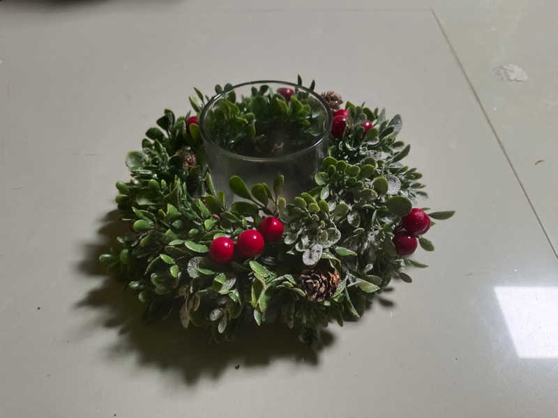 无玻璃杯烛台 三底座 绿叶白球和松果 - 5