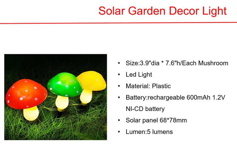 尺寸:3.9'直径 * 7.6'高/每个蘑菇