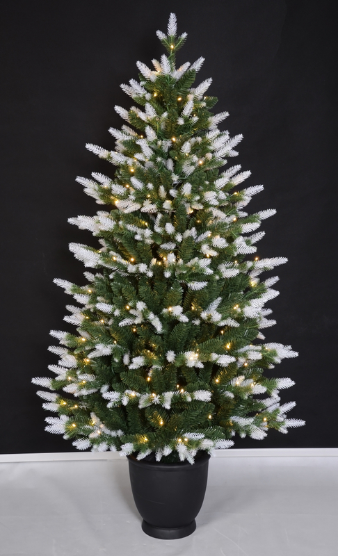 带有弦灯的绿色普通圣诞树 +白色羊群