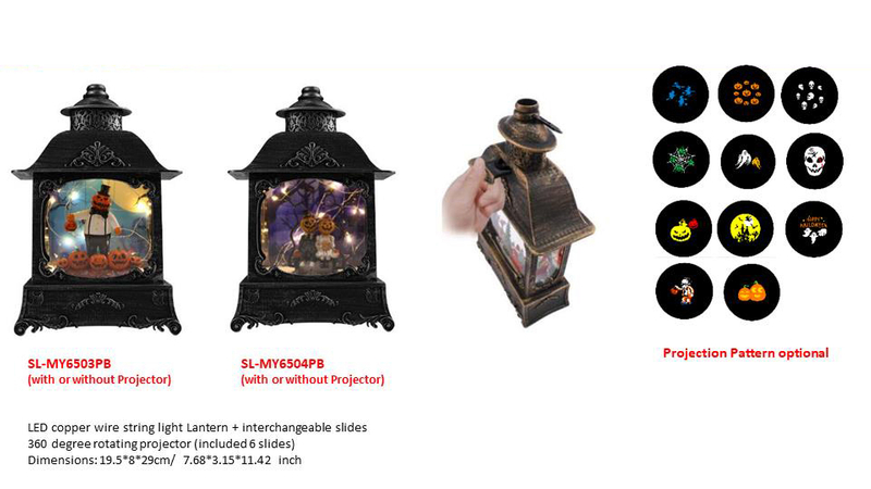 LED 铜线灯笼 + 可互换幻灯片 360 度旋转投影仪(包含 6 张幻灯片)尺寸:19.5*8*29 厘米/7.68*3.15*11.42 英寸