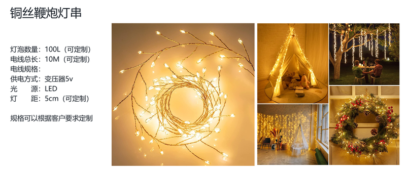 2米 20灯/32灯 金属叶子灯串 3AA电池盒供电