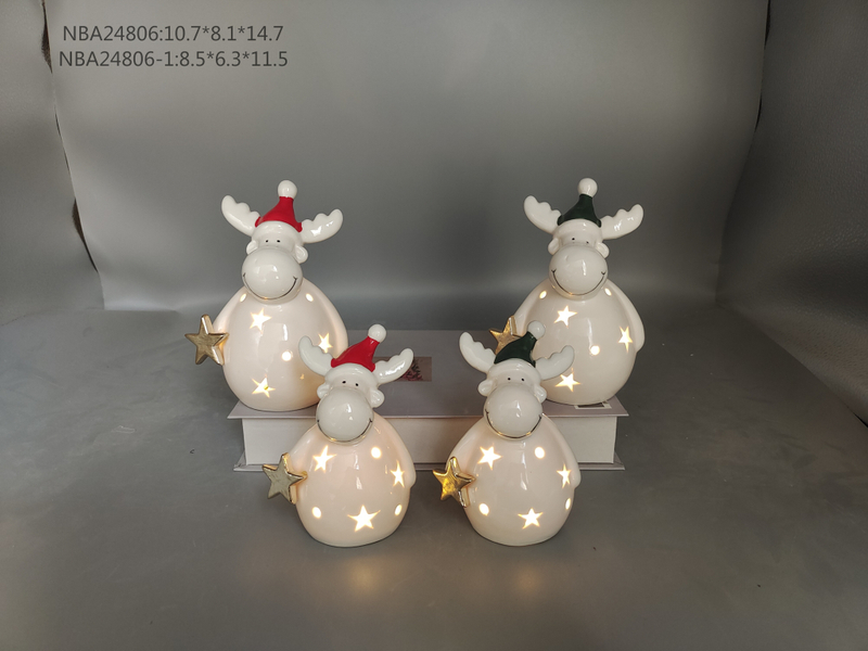 带有亮片鹿角灯的瓷质驯鹿 - 16