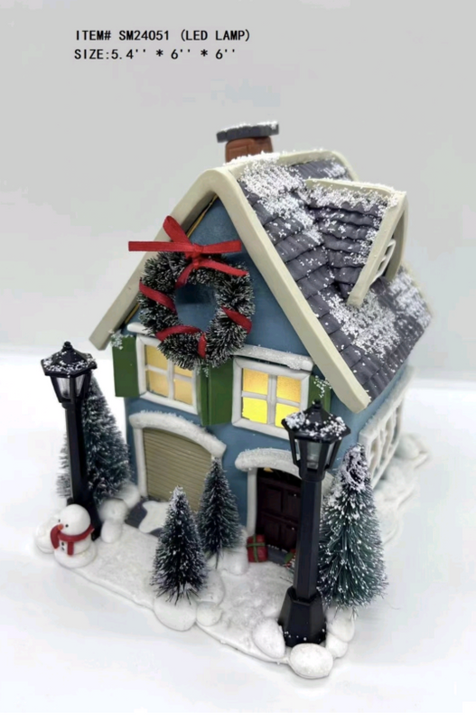 黏土造型 蓝色的小房子挂着花环
