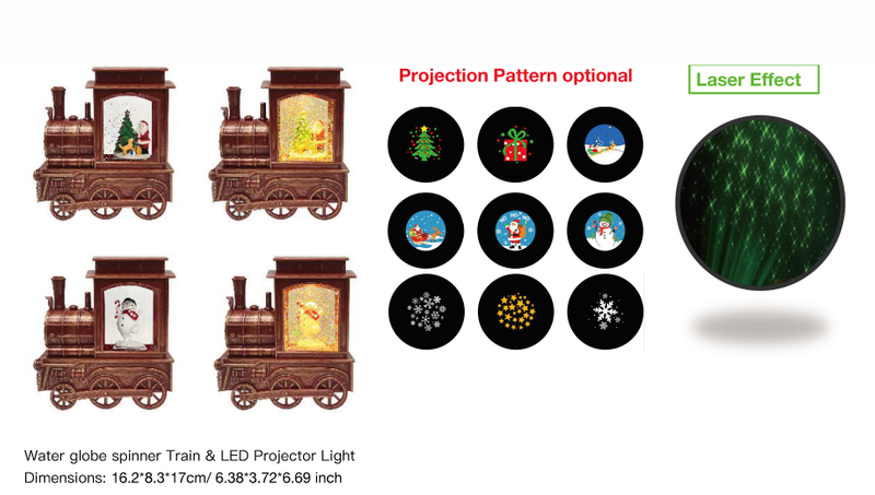 水球旋转火车和 LED 投影灯圣诞老人和狗 / Snowma
