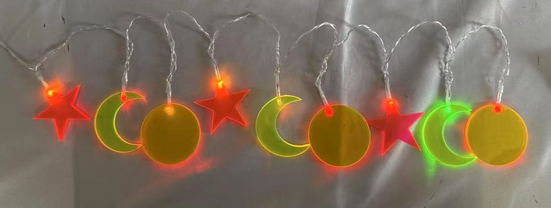 恒星/新月/圆形RGB F3弦灯,带9个LED灯泡,3×AA电池供电的,换色的装饰灯,用于派对和活动