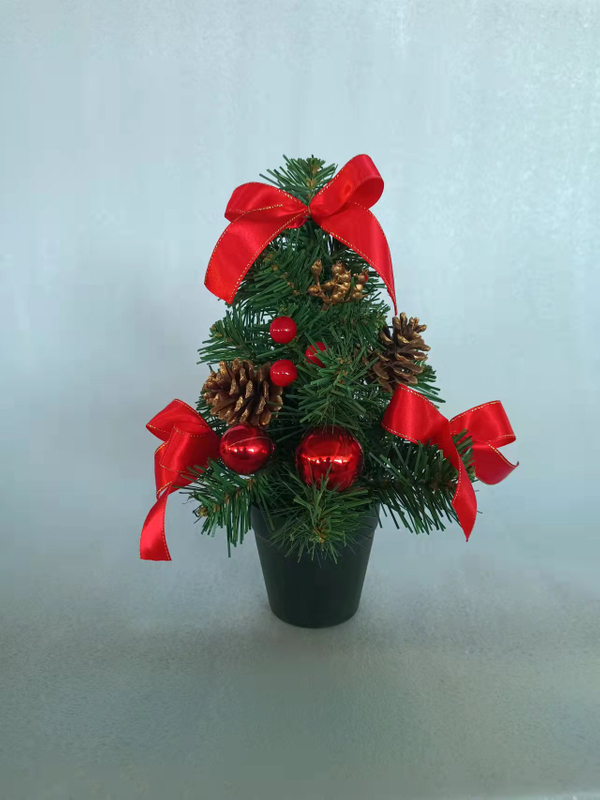 圣诞绿色迷你树+金球/闪光松果/红花/红带