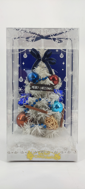 圣诞白色迷你树 + 彩球/雪花/蓝带