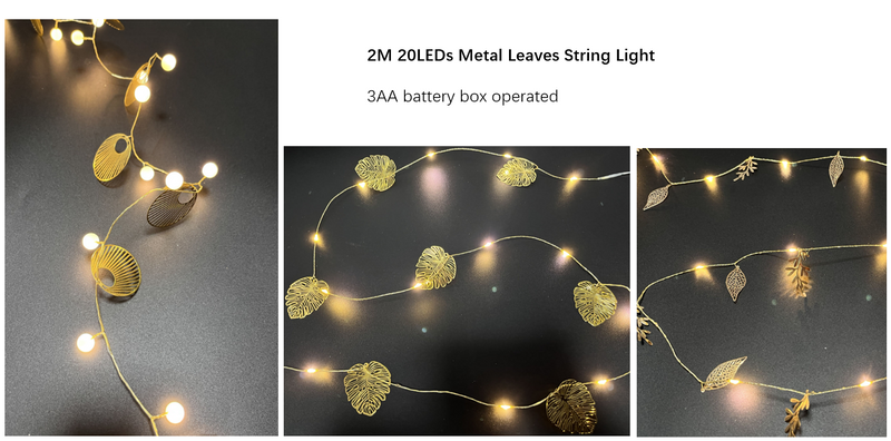 2米 20灯/32灯 金属叶子灯串 3AA电池盒供电